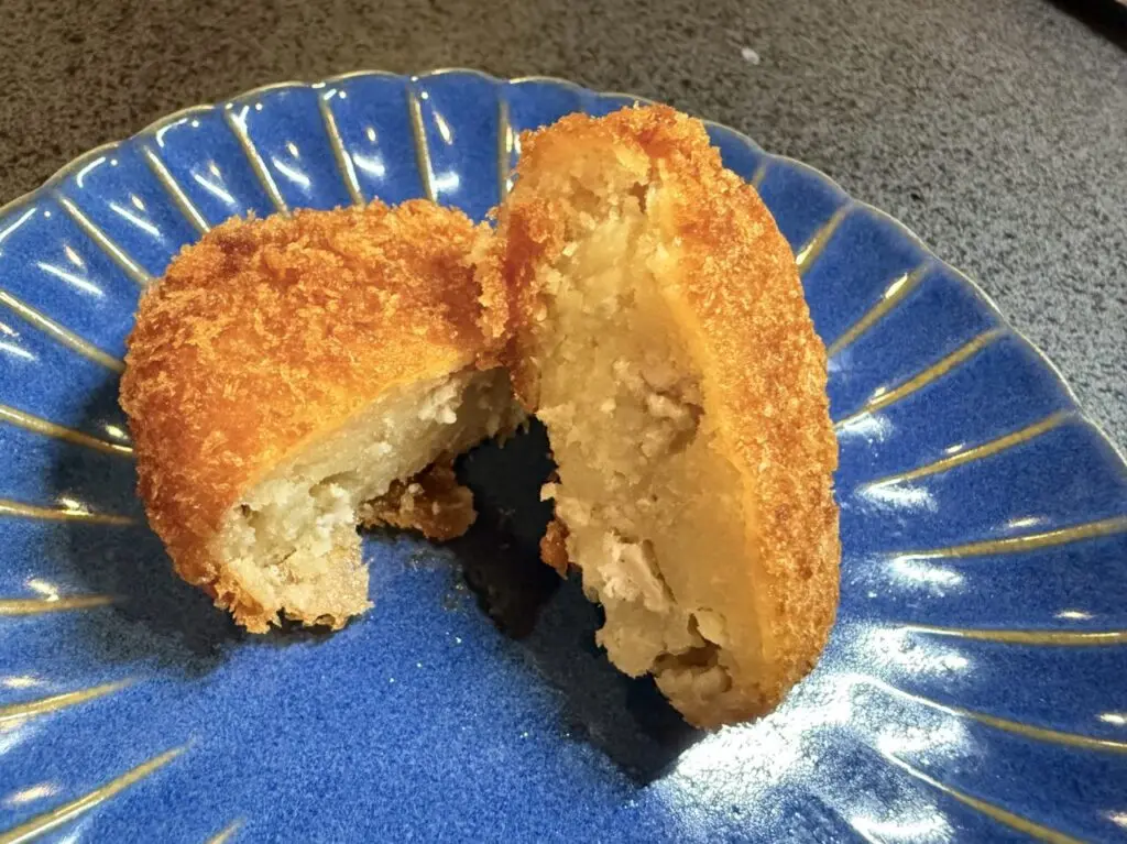 「焼きカレーパン」はざっくりとした大きなパン粉が周りにしっかりとついていました。真ん中の所からカレーがちょこっと顔を覗かせているのが可愛らしいです。