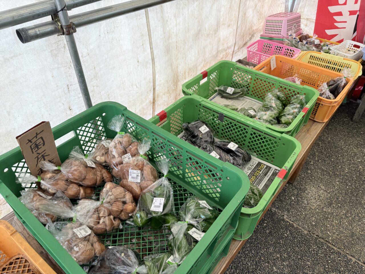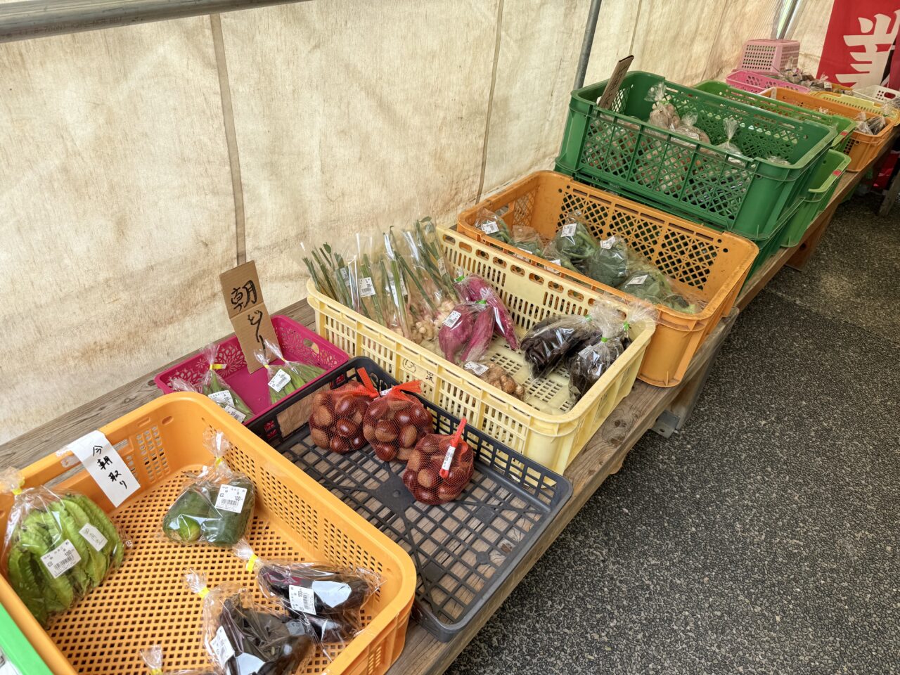 「農産物直売所 ちょっくら」を覗いてみると、地元で採れた新鮮野菜がずらっと並んでいました。「朝どり」と書かれている野菜がいくつかありました。