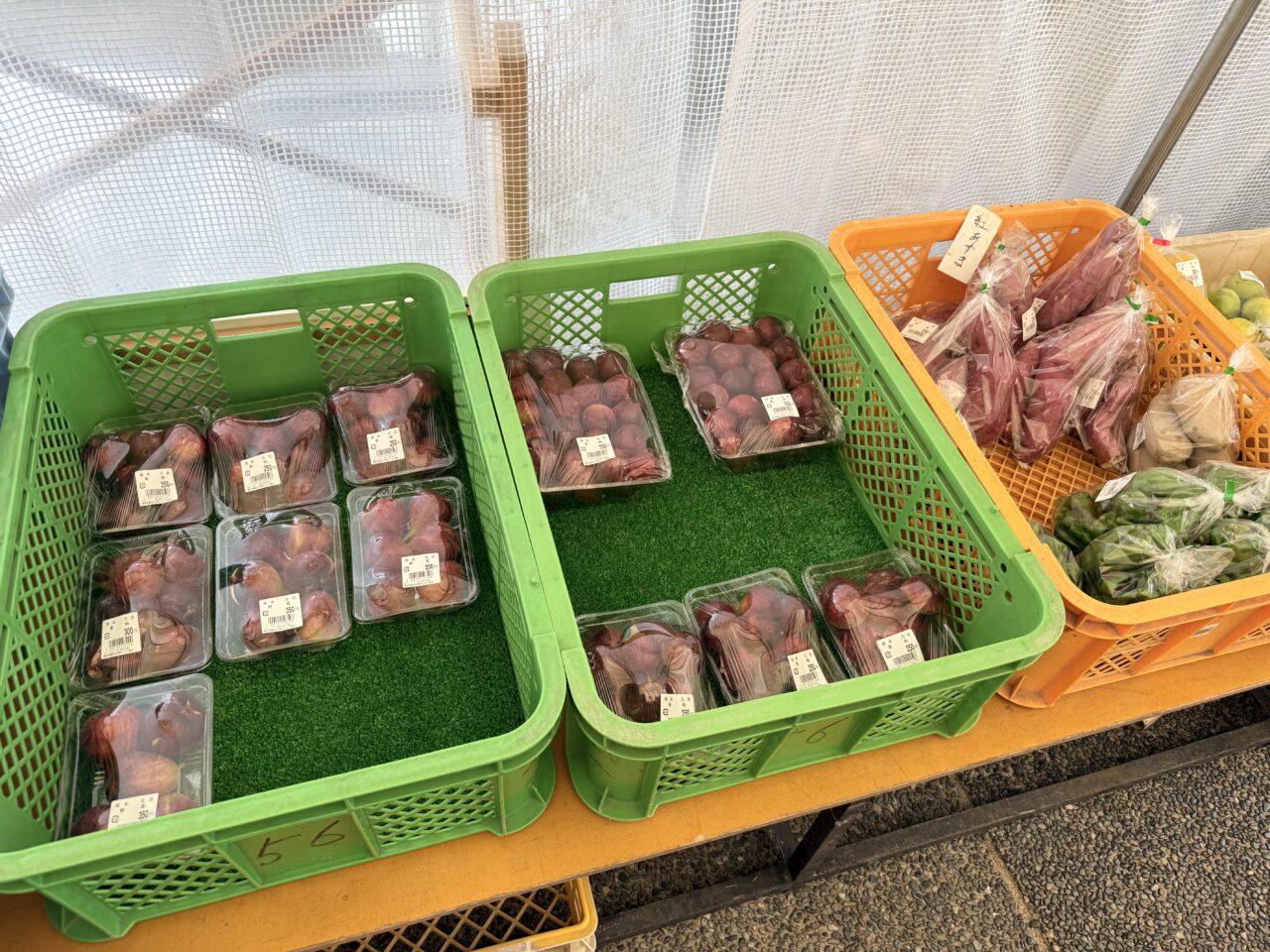 旬の野菜が並んでいて、ピーマン・なす・ししとう・ゴーヤ・さつまいも・じゃがいも・しょうが・冬瓜などがありました。いちじくは生産者の方が何人かいらっしゃり、大粒のいちじくがパックされているものや小ぶりのいちじくが入っているものなど、種類がいくつかありました。