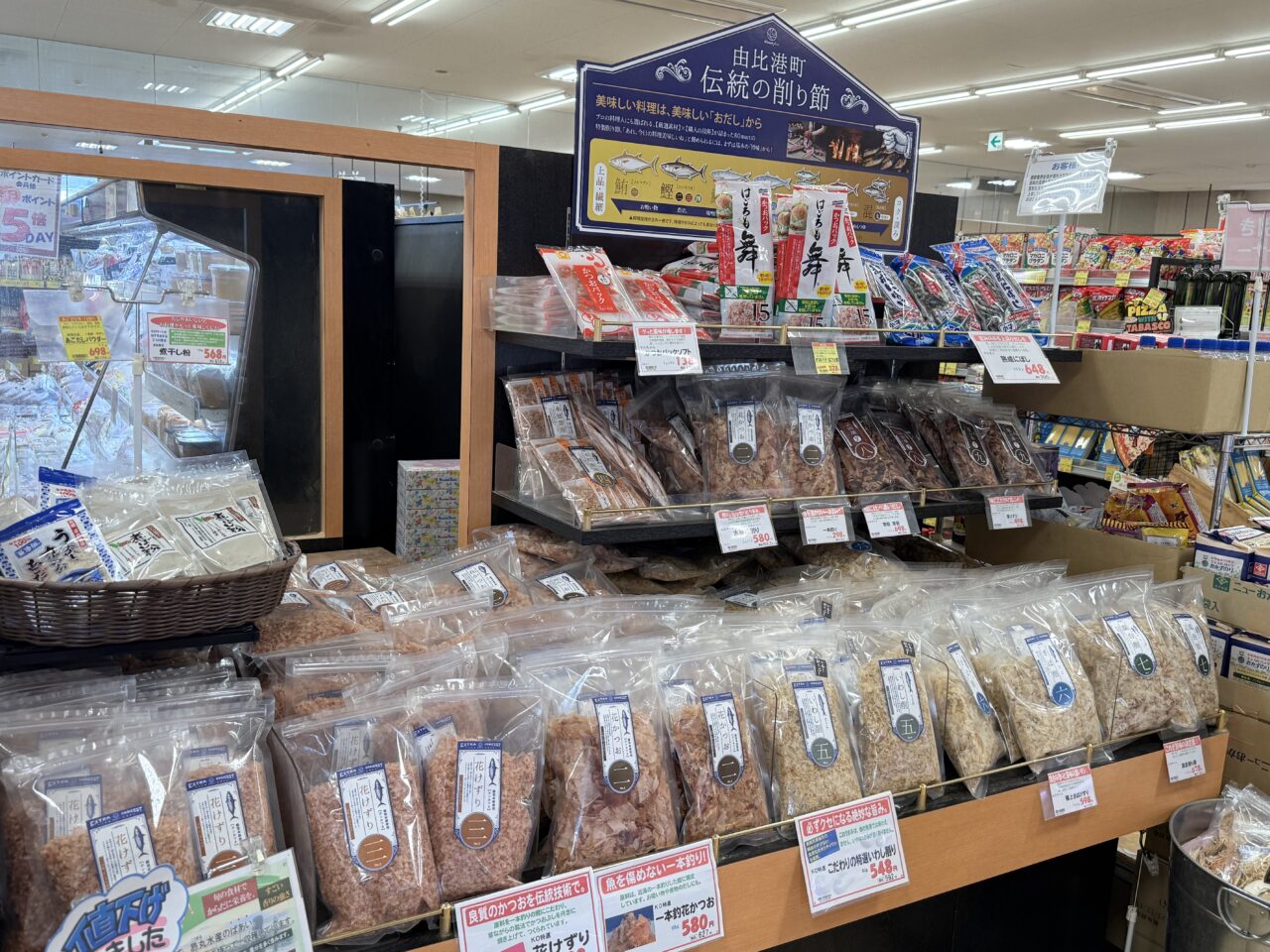 他にも「由比港町 伝統の削り節」と書かれたコーナーがあり、美味しいおだしが取れるようにわかりやすい説明と一緒に商品が置かれていました。いろいろな削り節があるので、自分の好みにあったものを選ぶことができます。