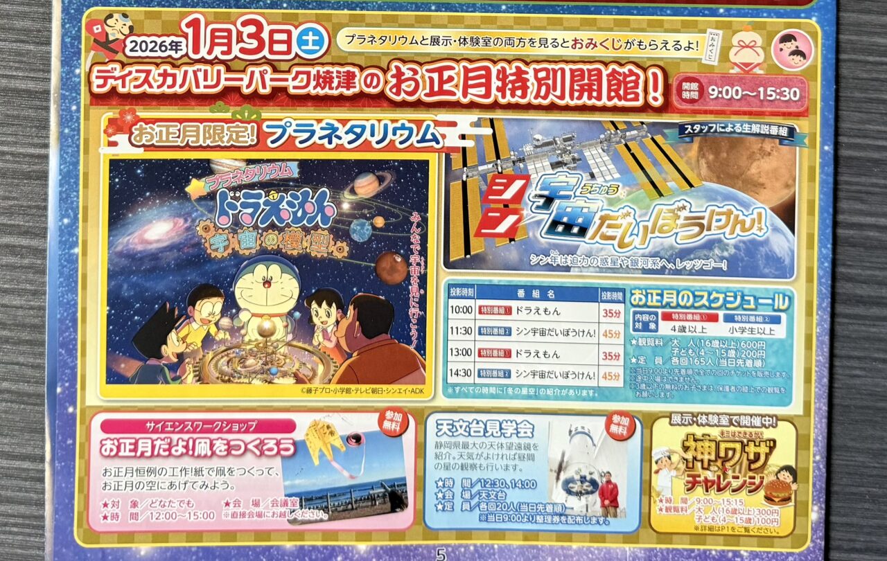 【焼津市】「ディスカバリーパーク焼津」のお正月特別開館ではお正月限定のプラネタリウムも開催!