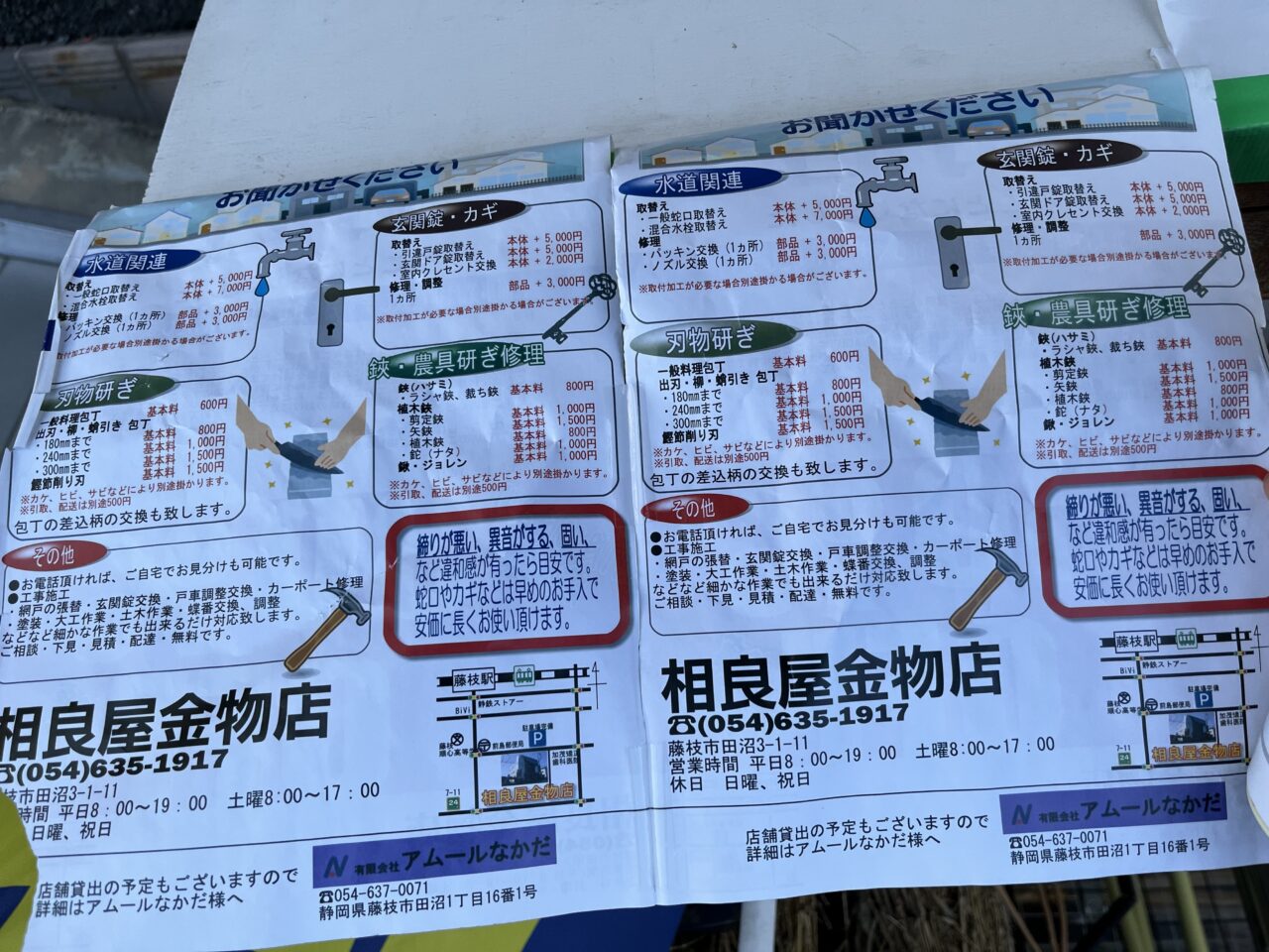 【藤枝市】閉店のお知らせ「相良屋金物店」が3月末日をもって閉店。