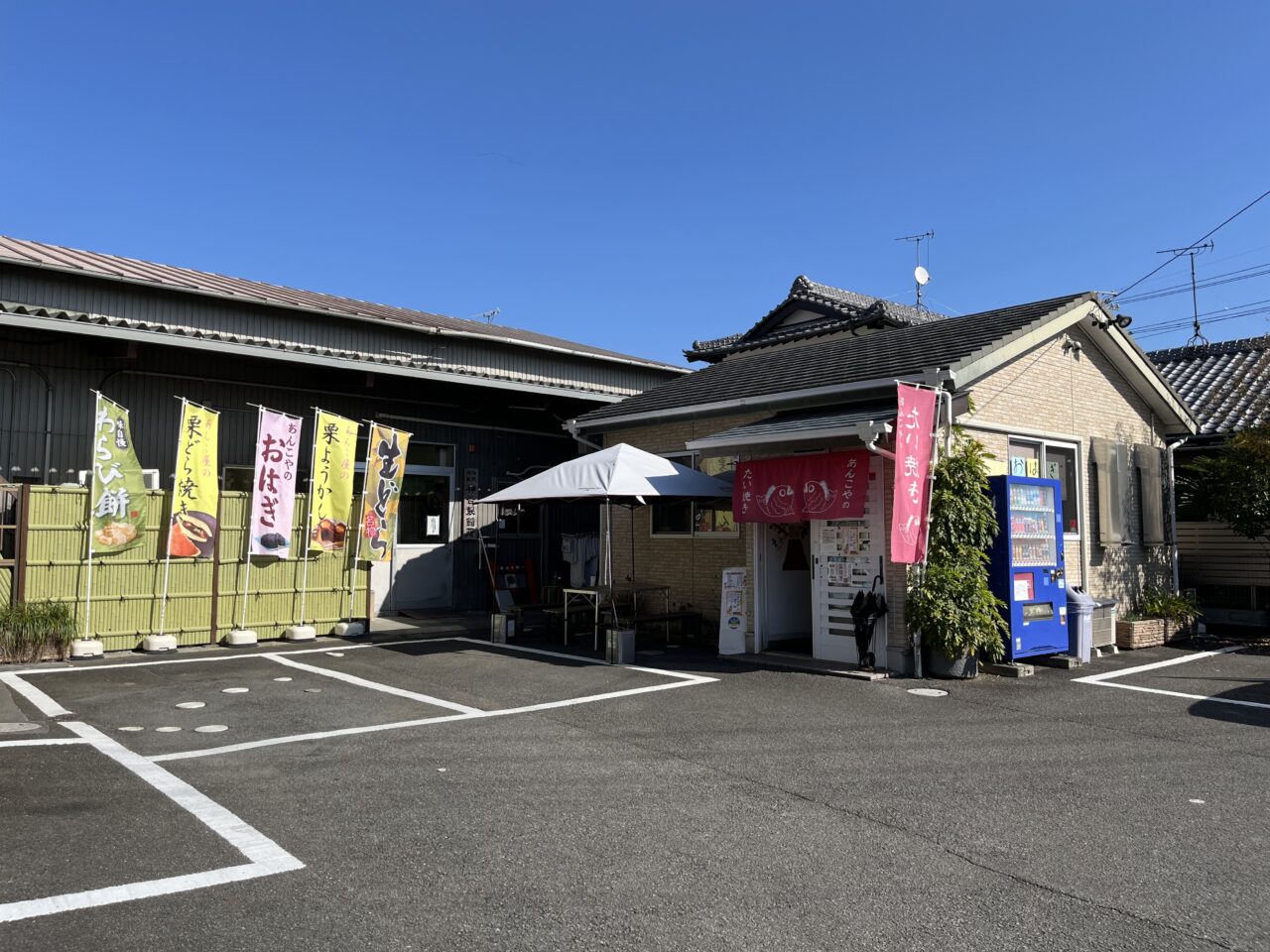 神谷製餡所には駐車場があり、車で訪れるのが便利です。お店の外には生どら、栗ようかん、おはぎなどの旗が立っていて賑やかです。