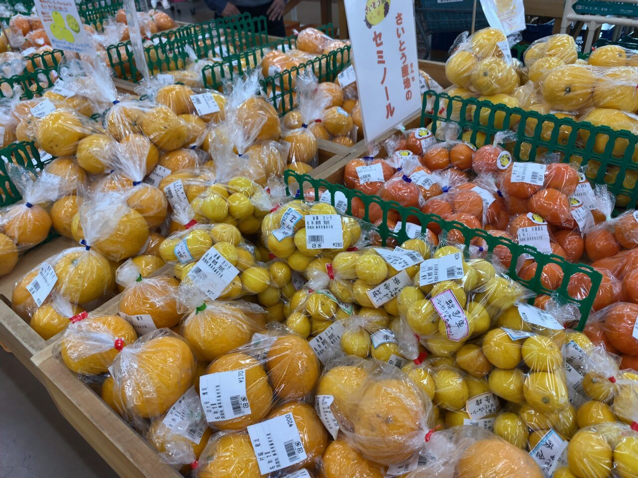 「ファーマーズマーケット まんさいかん」では新鮮な野菜や果物などがたくさん並んでいます。誰が作ったのかがわかるようになっていて、安心して選ぶことができます。