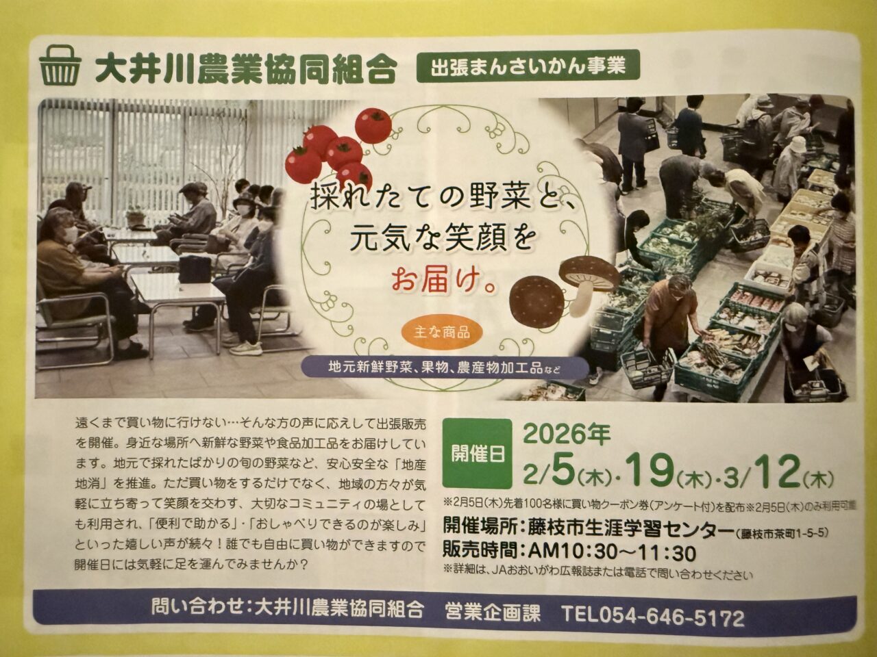 採れたての野菜と元気なお顔をお届け! 「出張まんさいかん」が2026年2月5日(木)・19日(木)・3月12日(木)に藤枝市生涯学習センターで開催されます。