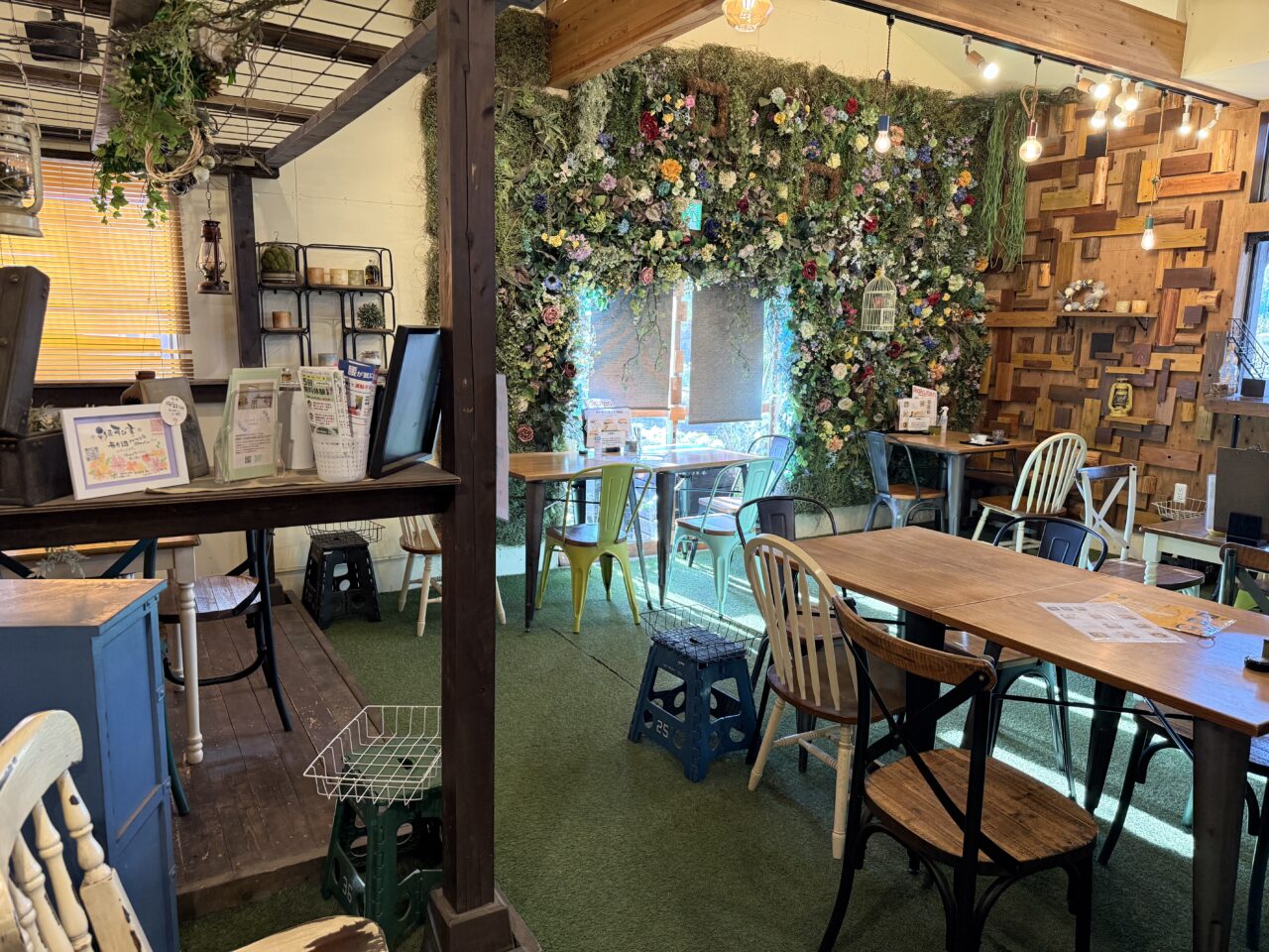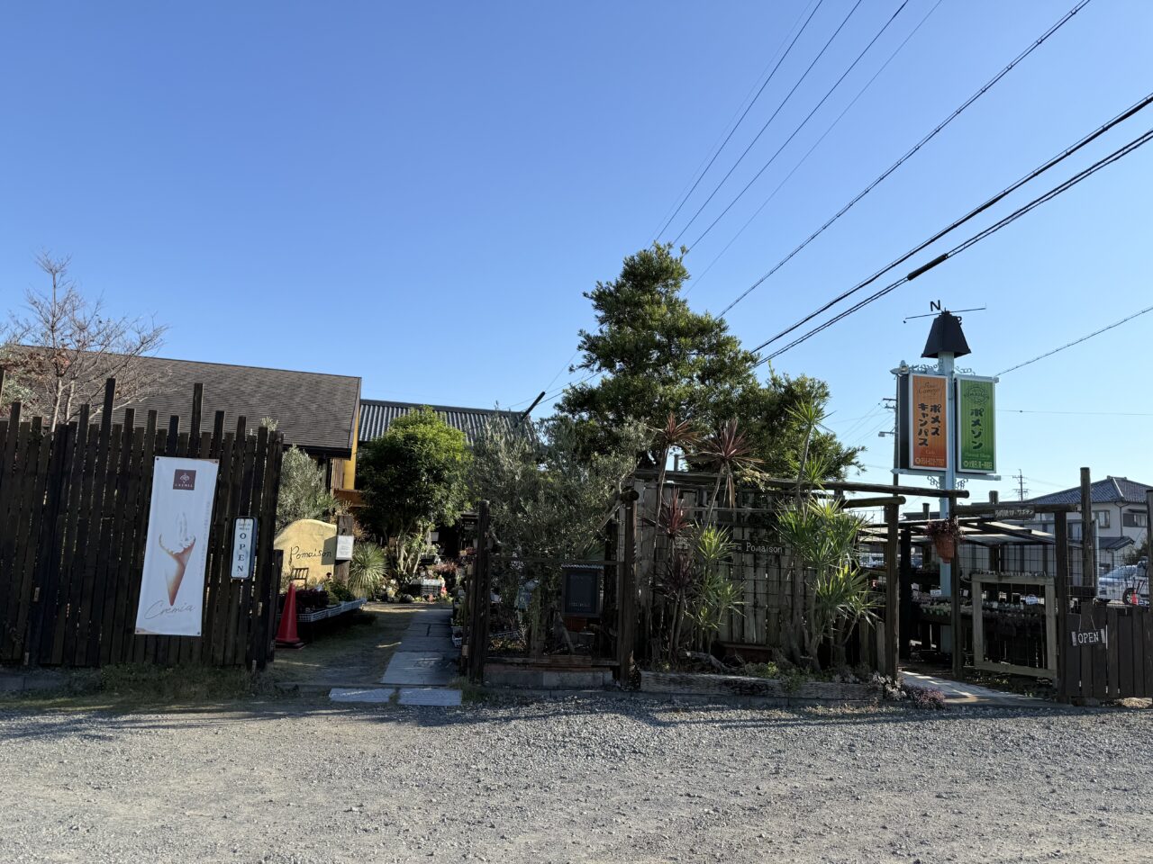 「ポメズキャンパス」は、園芸店「みどりのお店ポメゾン」に併設されたカフェで、コッペパンサンドを中心に焼き菓子も販売していました。お店はまるで花園の中にあるようになっていて、テーブルや椅子もとてもオシャレです。室内にいながら外で食事をしているような雰囲気です。