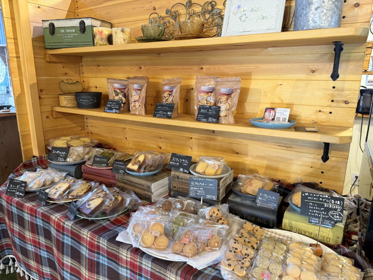 お店のレジ横には焼き菓子が並んでいました。サブレ、クッキー、パウンドケーキなど、種類が豊富です。オシャレなパッケージになっているものもあるため、プレゼントにもピッタリです。