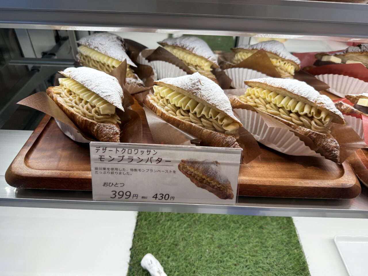 中でも目を引いたのは「デザートクロワッサン モンブランバター」です。「掛川栗を使用した、特製モンブランペーストをたっぷりと絞りました。」と説明が書かれていて、商品の特徴がわかりやすくて良いです。