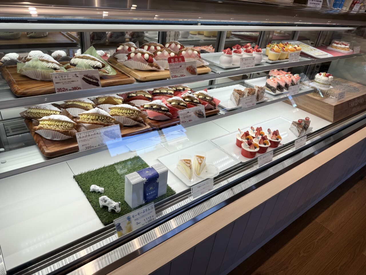「たこまん 藤枝高柳店」は和菓子だけでなく、ケーキやプリンなどの洋菓子も販売していました。ショーケースの中はとても色鮮やかで綺麗です。