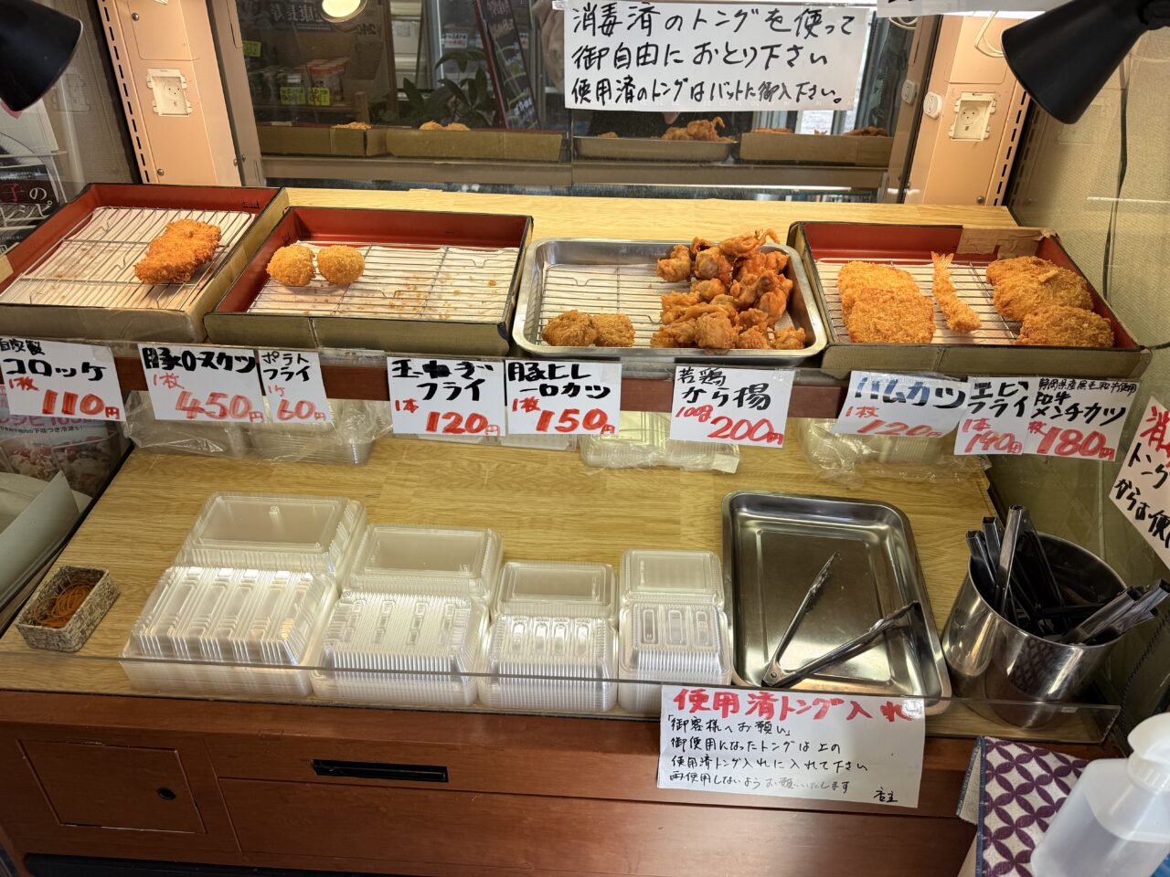 お店の中に入ると入り口付近に揚げ物のお惣菜がありました。精肉店が作っているお惣菜だけありメンチカツ、ハムカツ、若鶏から揚、豚ヒレ一口カツ、豚ロースカツなど、お肉の揚げ物がありました。