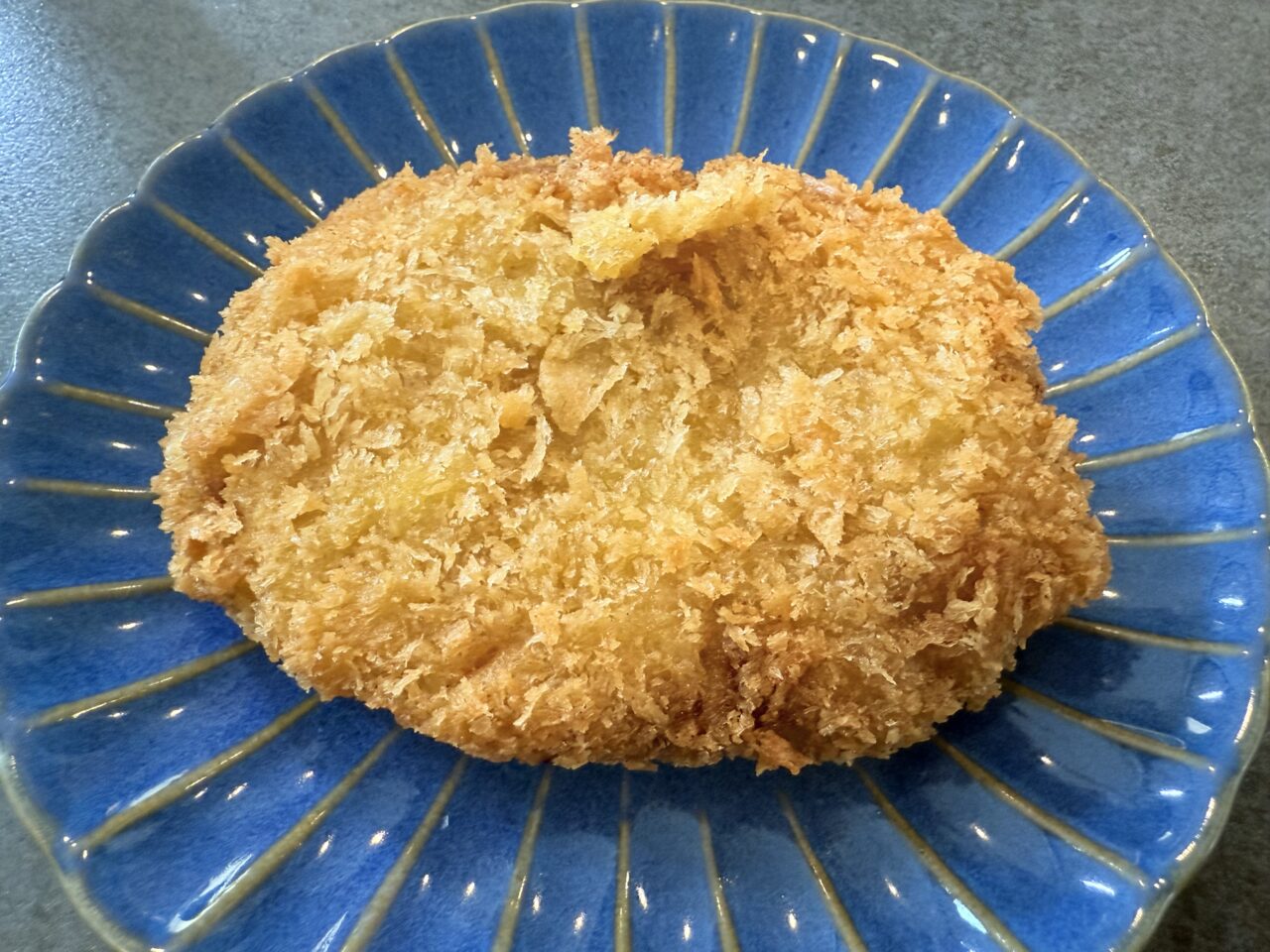「和牛メンチカツ」は小判型をしていて、とても美味しそうな綺麗なきつね色をしていました。
