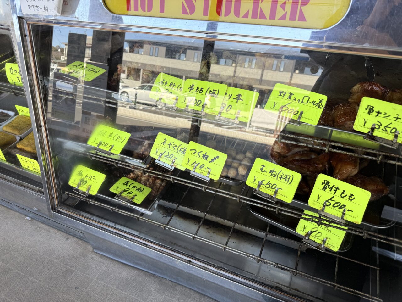 地域の方に愛され続けている「瀬古屋鳥肉店」は、お店の中に入ると鶏を使ったお惣菜がショーケースの中に並んでいました。砂肝、串もも(塩)、野菜入りロール巻き、骨ナシチキン、モモ串(タレ)、ネギマ(塩)、つくね、むね(手羽)、骨付もも、レバー、皮(かわ)など、さすがの品揃えです。