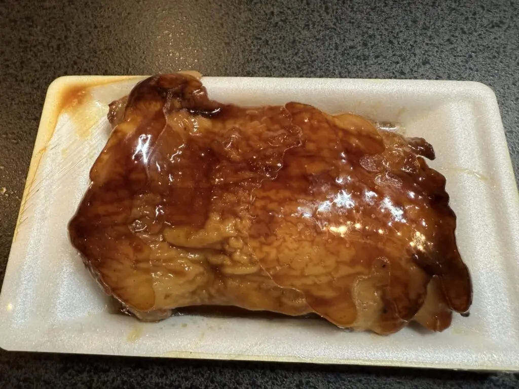 「骨ナシチキン」をお願いすると、お店の方が綺麗にパックに入れてくれました。「骨ナシチキン」は艶々としてとても美味しそうです。