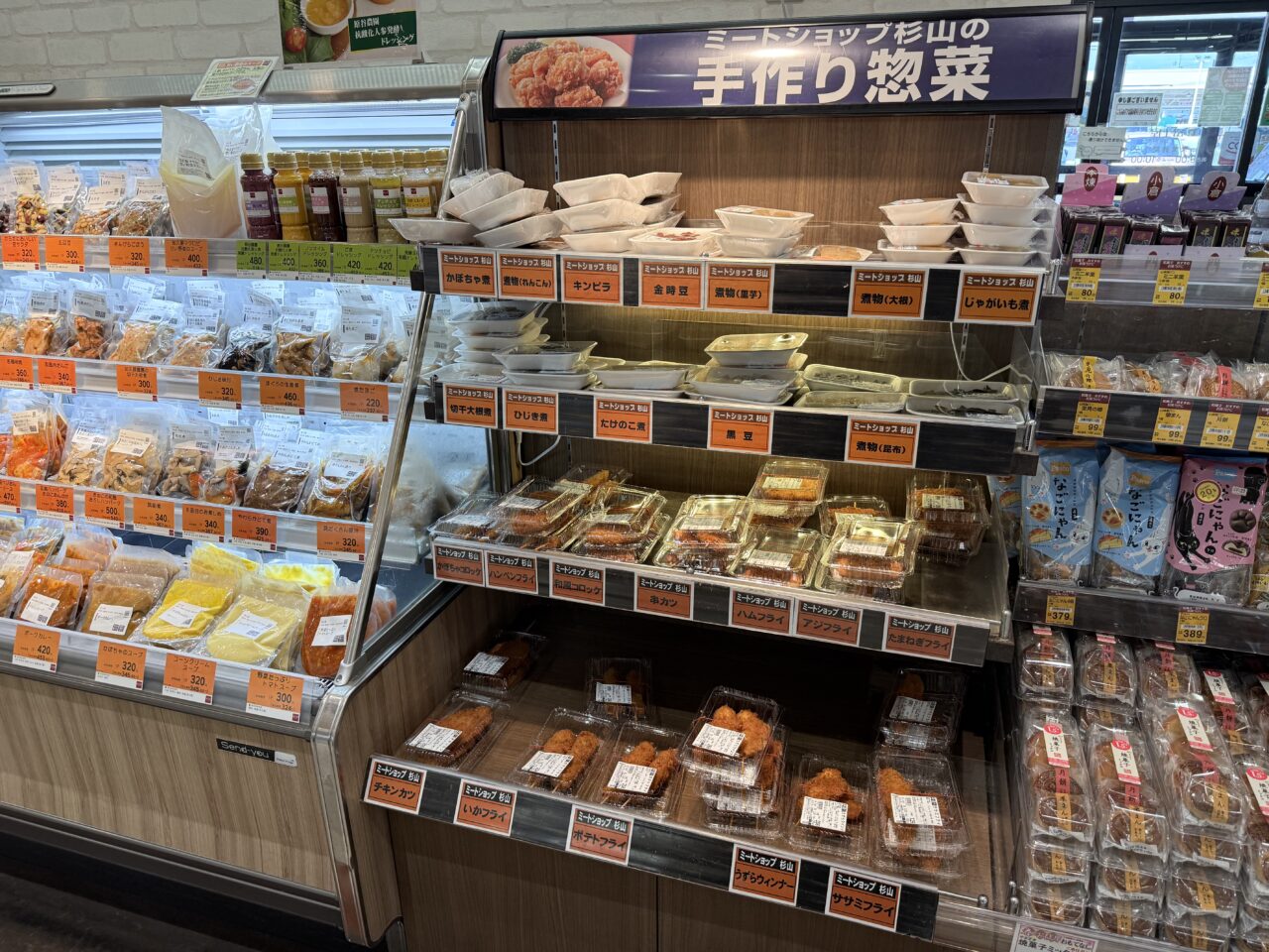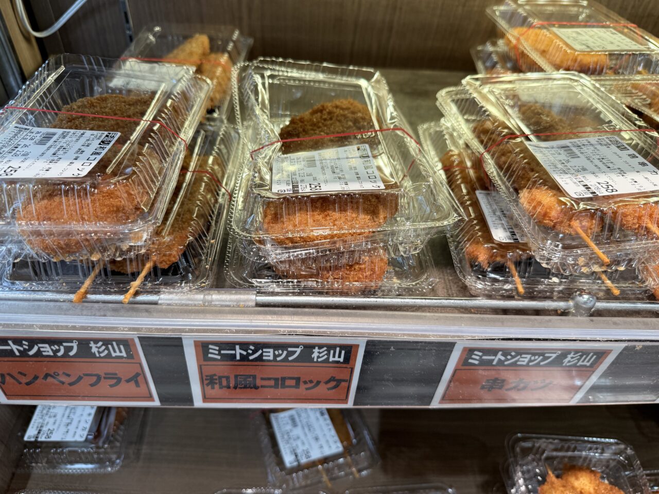 「ミートショップ杉山の手作り惣菜」には煮物や揚げ物などがありました。揚げ物の中には「和風コロッケ」がありました。