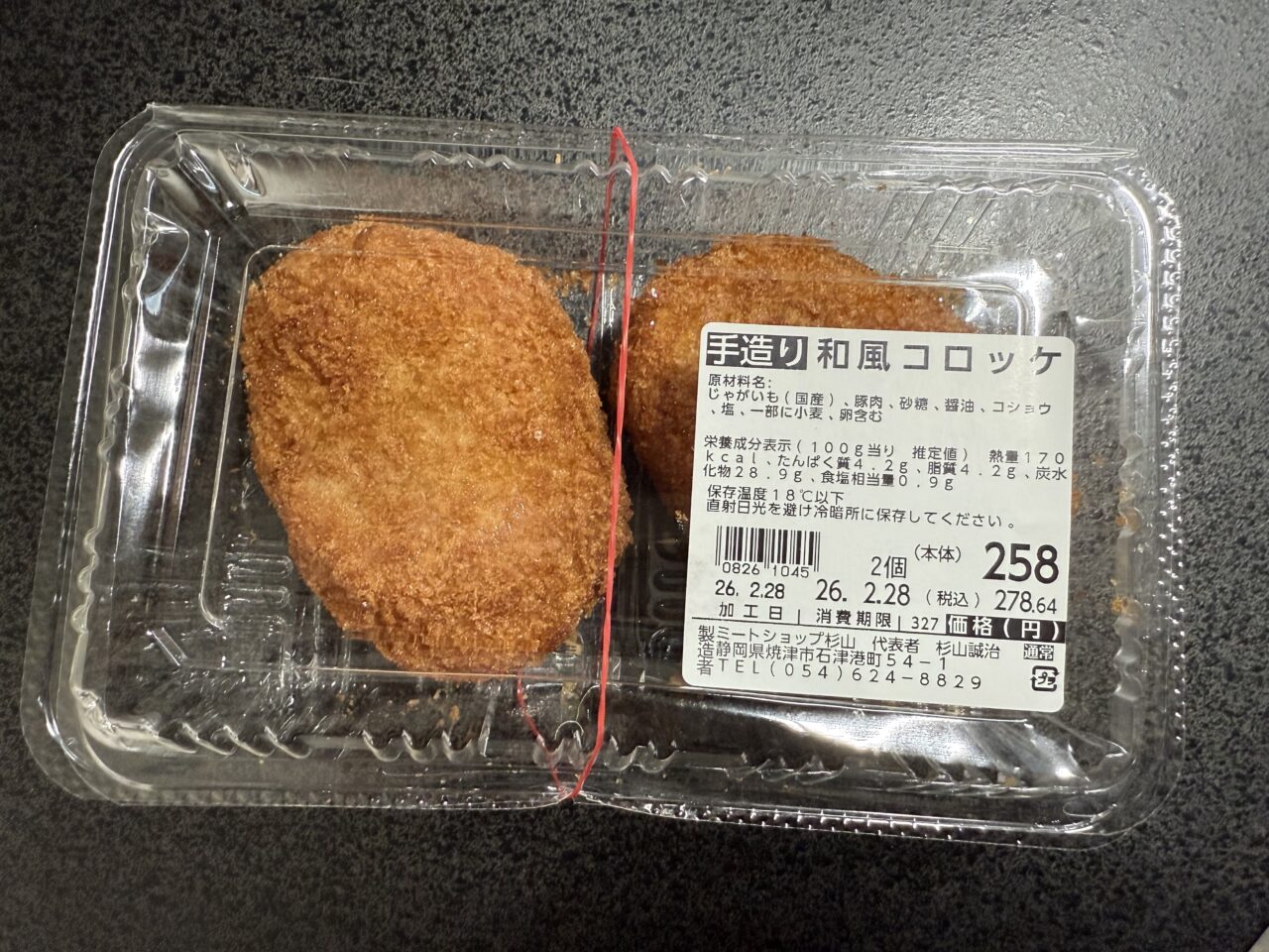 「和風コロッケ」は「手造り」と書かれていて、2個入りで278円(税込)でした。